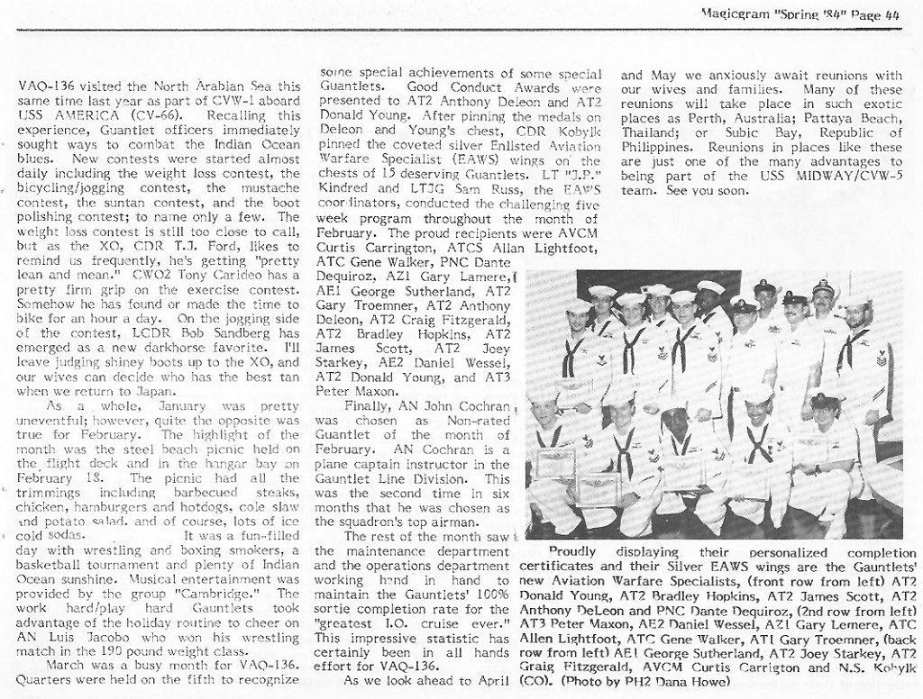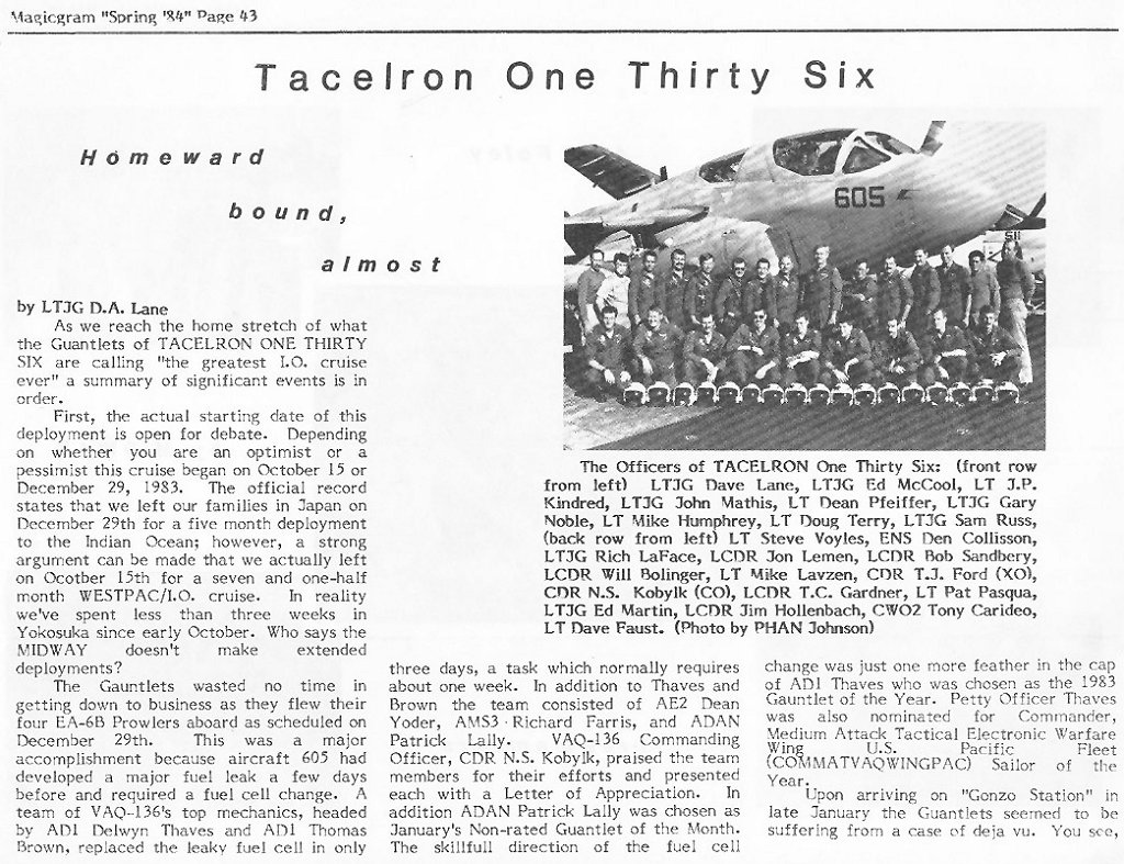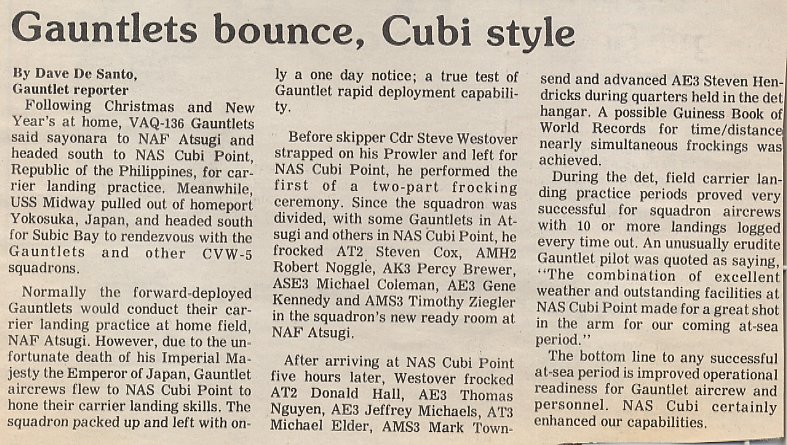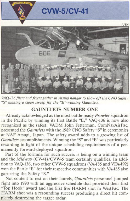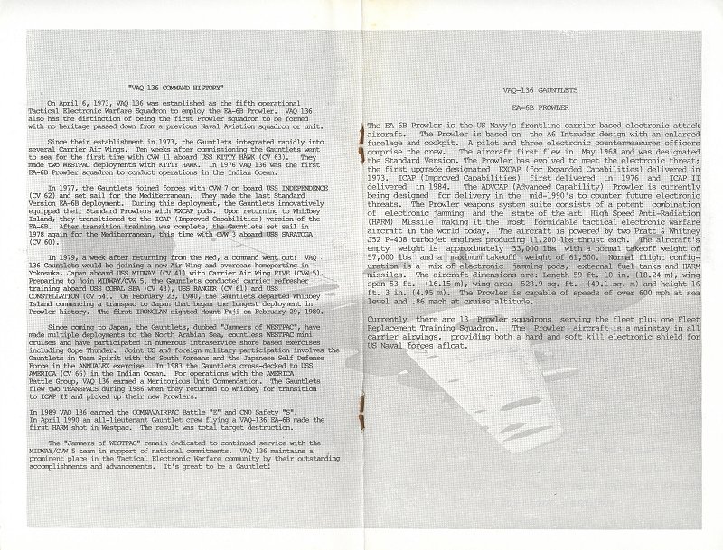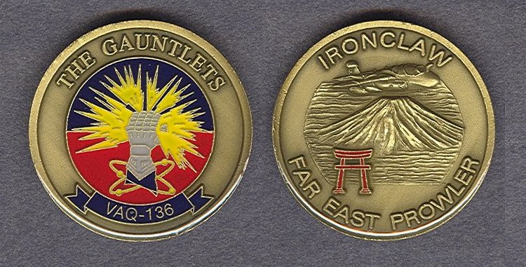 For anyone interested in obtaining Gauntlet memorabilia, eBay always has much to offer. I recommend using the "Search" tool on eBay's homepage, using the following keywords:"VAQ-136" & "EA-6B Prowler" Some of the items frequently offered are: Patches, lapel/hat pins, hats, photos, postcards, cruise books, plastic models, and much more. In addition to eBay, there are many online stores offering VAQ-136 memorabilia. Patches and hats are the most common items, with shirts and sweatshirts also available.